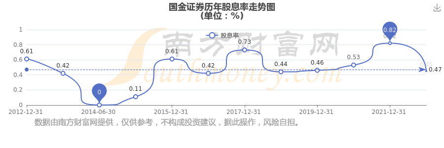 近年國(guó)金證券年度股息率走勢(shì)如下圖: