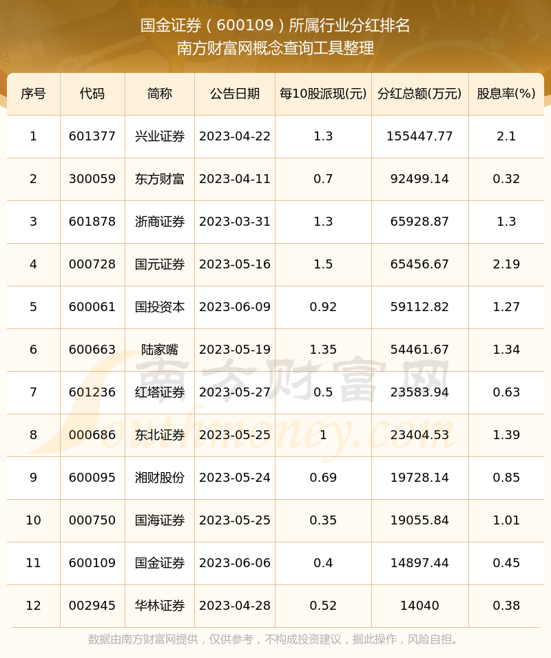國(guó)金證券600109分紅怎么樣_所屬行業(yè)股票分紅排名查詢(2025/11/29)