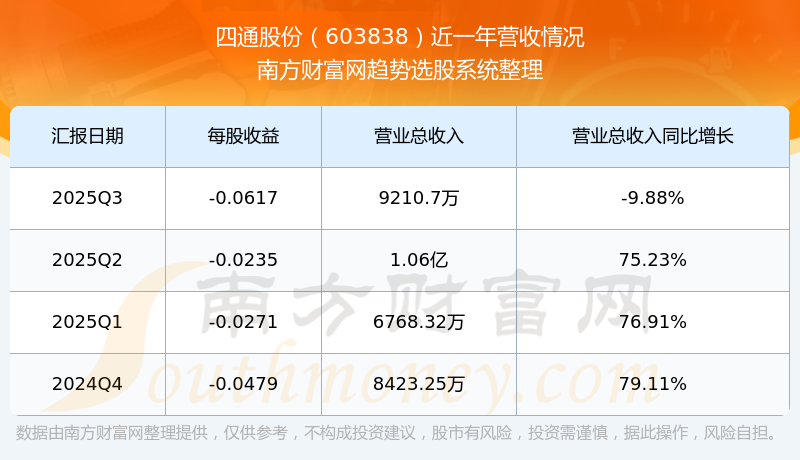 2025年第三季度,四通股份營收同比-9.88%,凈利潤同比-2190.76%。