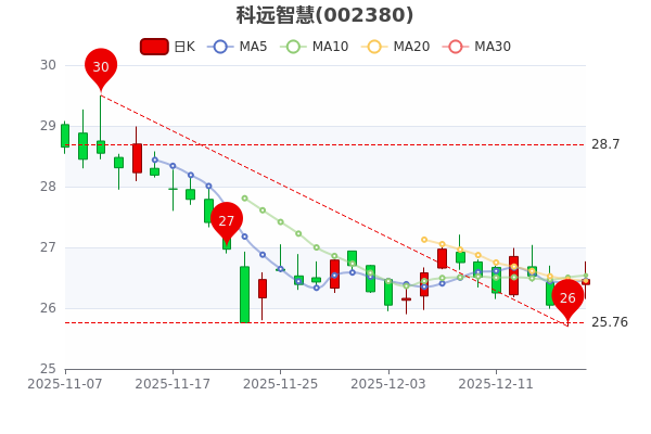 12月18日,科遠(yuǎn)智慧(002380)下午三點(diǎn)收盤股價(jià)報(bào)26.470元,漲0.34%,市值為63.53億元,換手率1.6%,當(dāng)日成交額6019.7萬元。
