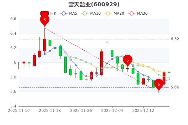 雪天鹽業(yè)12月19日股價(jià),截至10時(shí),該股跌0.17%,股價(jià)報(bào)5.850元,成交198.4萬手,成交金額1155.9萬元,換手率0.12%,在A股最新總市值95.95億元。