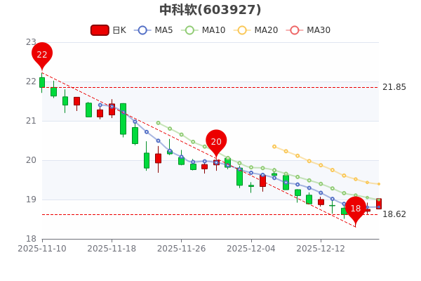 中科軟開盤價(jià)報(bào)18.76元,現(xiàn)漲1.44%,總市值為157.57億元;截止發(fā)稿,成交額2210.45萬元。