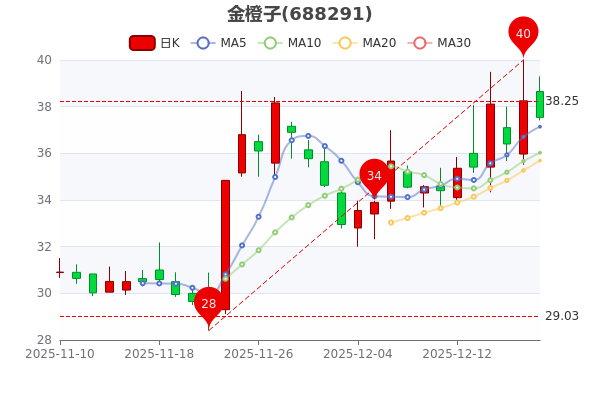 金橙子開盤價(jià)報(bào)38.65元,現(xiàn)跌1.86%,總市值為38.45億元;截止發(fā)稿,成交額1.37億元。
