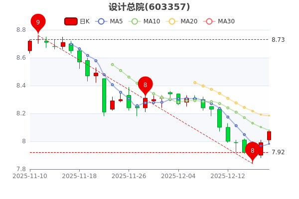 12月19日消息,設(shè)計(jì)總院開盤報(bào)8.01元,截至下午三點(diǎn)收盤,該股漲1%,報(bào)8.070元。當(dāng)前市值45.24億。