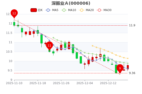12月19日收盤短訊,深振業(yè)A股價下午3點收盤漲2.41%,報價9.780元,市值達到132.03億。