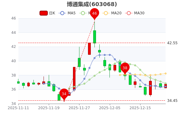 博通集成最新報價36.610元,7日內(nèi)股價下跌4.35%;今年來漲幅上漲23.87%,市盈率為-228.81。