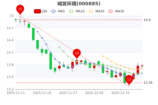 12月22日盤中消息,城發(fā)環(huán)境開盤報13.77元,截至11時17分,該股漲0.07%,報13.790元,總市值為88.54億元,PE為7.76。