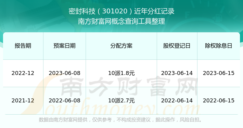 密封科技最新一次公布的分紅方案:10派1.8元。
