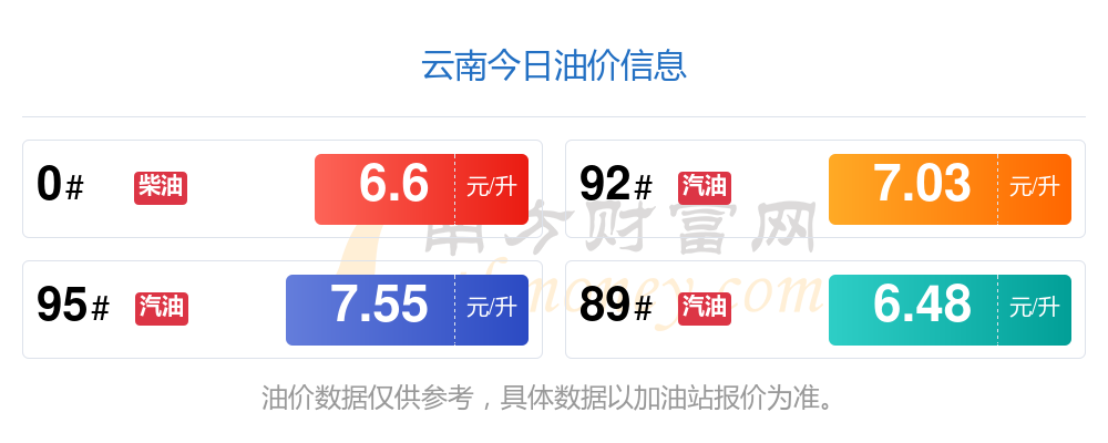香格里拉汽油、柴油11月27日每升的價(jià)格具體是(11月25日調(diào)整后的價(jià)格):92號(hào)汽油7.03元;95號(hào)汽油7.55元;89號(hào)汽油6.48元;0號(hào)柴油6.6元。香格里拉下一輪油價(jià)調(diào)整時(shí)間12月8日24時(shí),距離現(xiàn)在還有11.63天。