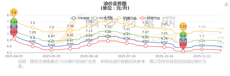 2025年95號(hào)汽油價(jià)格一覽表
