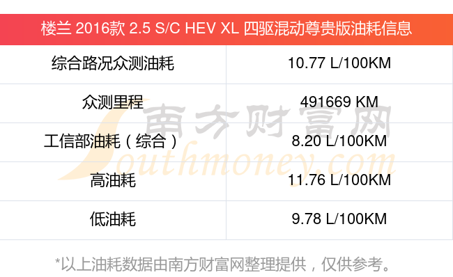 根據車主實測數據,該車型低油耗為9.78升每百公里,高油耗為11.76升每百公里,綜合路況眾測油耗為10.77升每百公里,工信部綜合油耗為8.20升每百公里。
