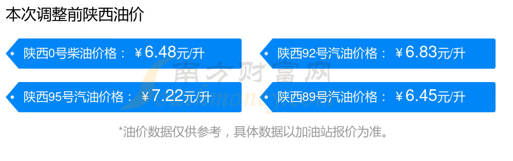 油價(jià)數(shù)據(jù)僅供參考,請(qǐng)以您所在地區(qū)的加油站報(bào)價(jià)為準(zhǔn)。南方財(cái)富網(wǎng)發(fā)布此信息的目的在于傳播更多信息,對(duì)使用該油價(jià)信息所導(dǎo)致的結(jié)果概不承擔(dān)任何責(zé)任。