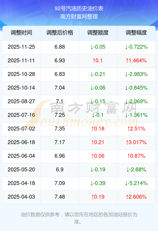 天津2025年汽油價(jià)格調(diào)整時(shí)間表