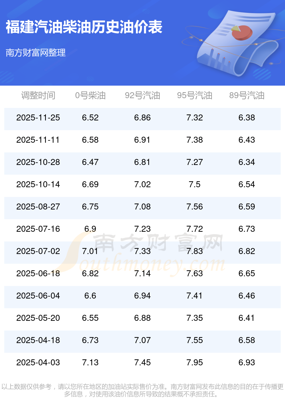 2025年福建汽油價格一覽表