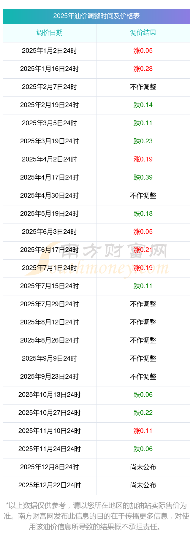 2025年國內(nèi)油價調(diào)整時間表及價格查詢(2025-11-29)