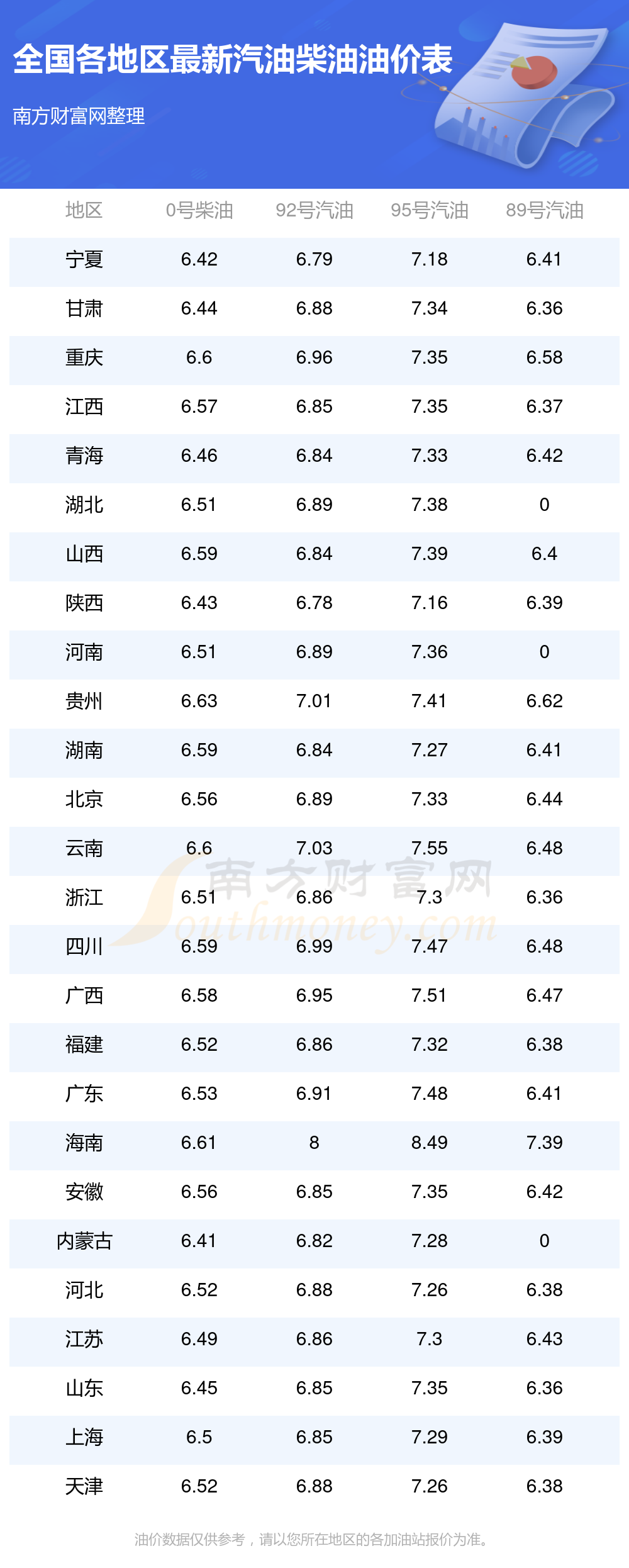 2025年11月29日全國各地油價調(diào)整及最新汽油價格表
