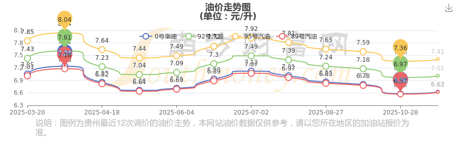 黔東南95號汽油11月29日的價(jià)格為7.41元/升,本次油價(jià)的調(diào)整時(shí)間為11月25日,對比上次油價(jià)調(diào)整時(shí)間10月28日的價(jià)格7.47元/升,共跌了0.06元,跌幅達(dá)0.803%。下一輪油價(jià)調(diào)整時(shí)間12月8日24時(shí),距離現(xiàn)在還有9.38天。