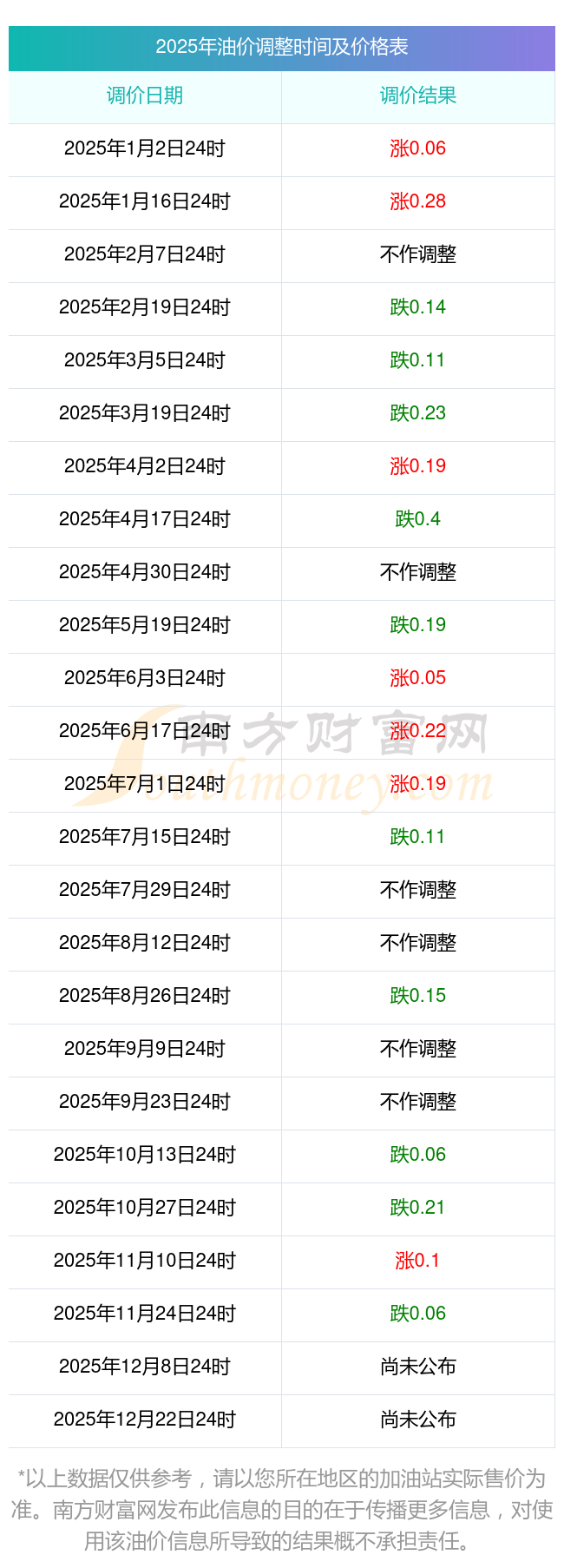 2025年深圳光明區(qū)11月29日汽油價格調(diào)整時間表