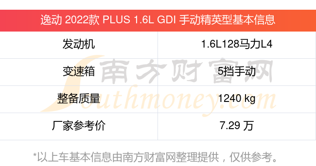 在動(dòng)力方面,逸動(dòng) 2022款 PLUS 1.6L GDI 手動(dòng)精英型搭載的是一臺(tái)1.6L128馬力L4自然吸氣發(fā)動(dòng)機(jī),匹配5擋手動(dòng)擋變速箱,燃料形式為汽油,常規(guī)整備質(zhì)量1240kg,廠家參考價(jià)7.29萬(wàn)元。