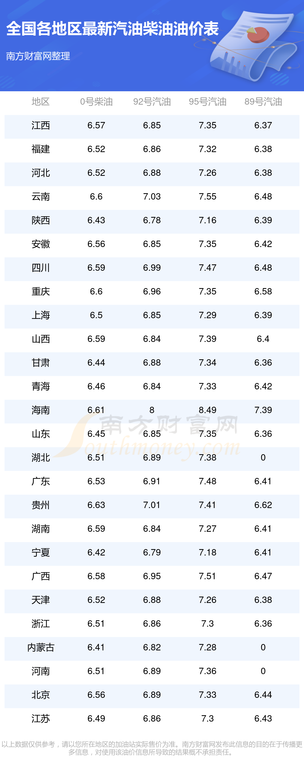 全國(guó)各地區(qū)最新油價(jià)表