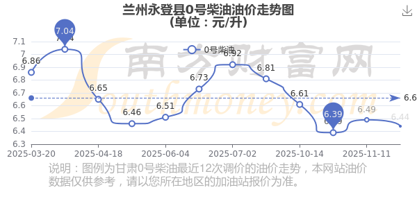蘭州永登縣0號柴油歷史油價(jià)走勢圖