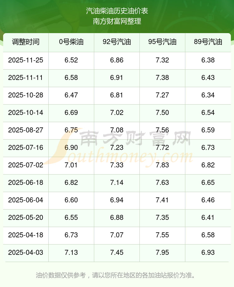 2025年汽油柴油油價(jià)調(diào)整一覽表