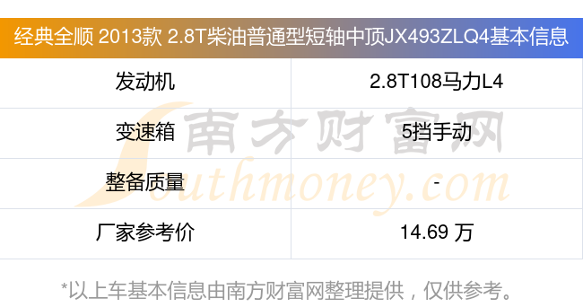 在動力上,經(jīng)典全順 2013款 2.8T柴油普通型短軸中頂JX493ZLQ4配備的是一臺2.8T108馬力L4渦輪增壓發(fā)動機,匹配的是5擋手動擋變速箱,燃料形式為柴油,廠家參考價14.69萬元。