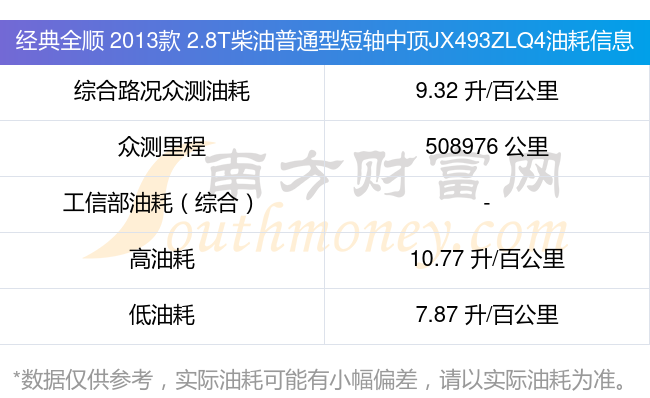 經(jīng)典全順 2013款 2.8T柴油普通型短軸中頂JX493ZLQ4油耗真實油耗是多少?(11月29日)