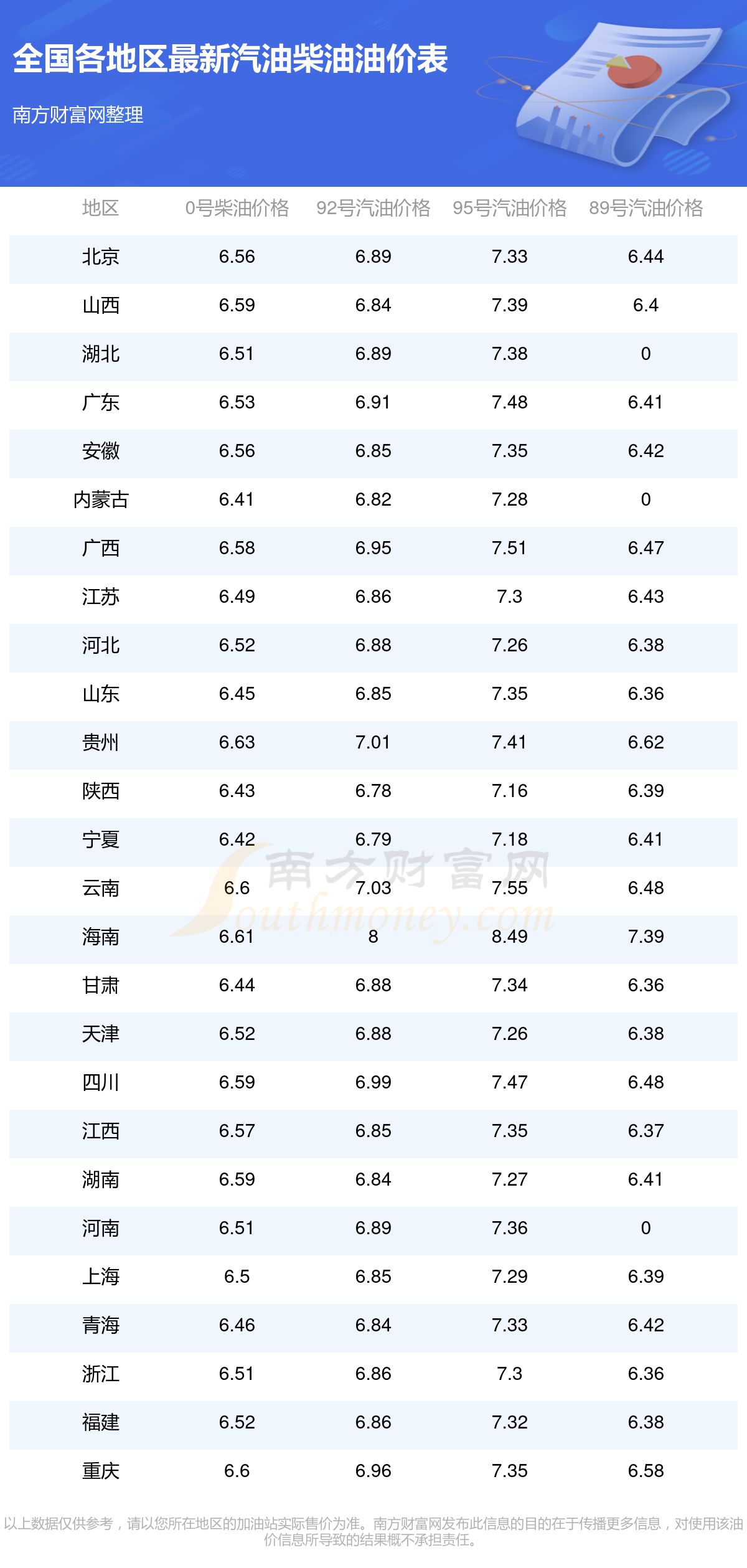 油價調(diào)整最新消息:下一輪油價調(diào)整時間12月8日24時。 北京汽油、柴油11月29日每升最新價格多少錢一升?本次油價調(diào)整時間為11月25日,92號汽油為6.89元,下降了0.05元;95號汽油為7.33元,下降了0.06元;89號汽油為6.44元,下降了0.06;0號柴油為6.56元,下降