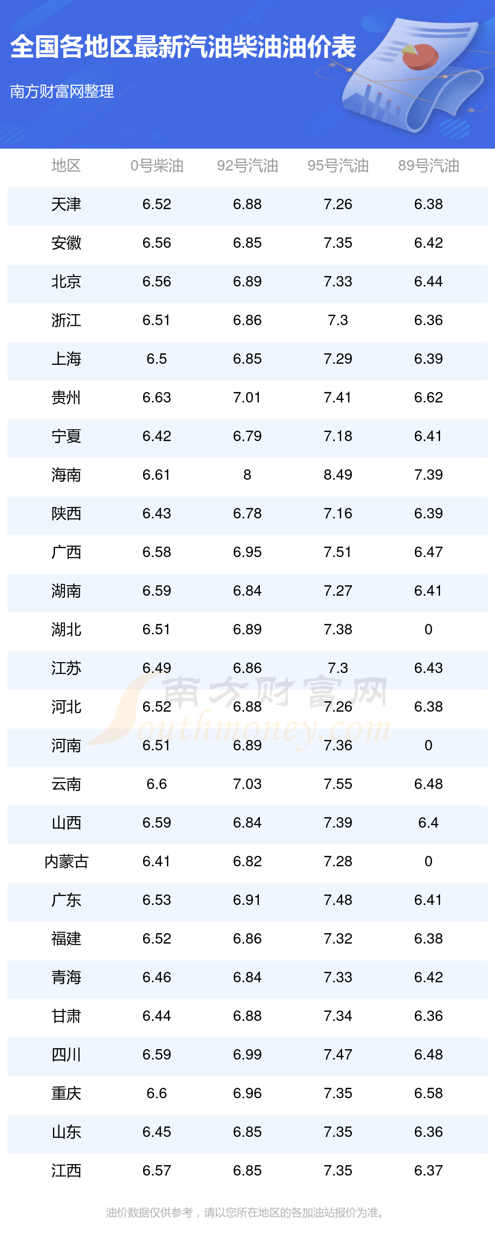 2025年11月29日全國油價調(diào)整及最新汽油價格表