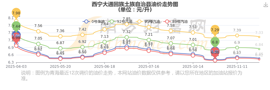 11月29日西寧大通回族土族自治縣0號(hào)柴油歷史油價(jià)走勢(shì)圖