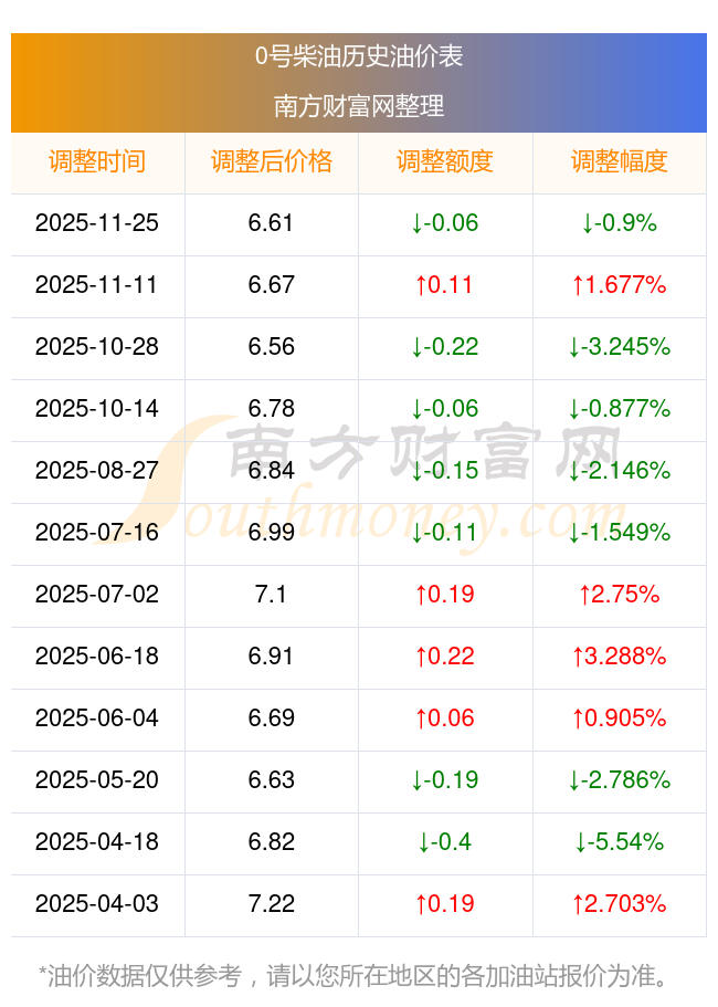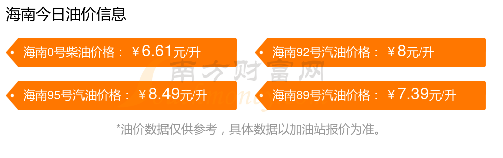 油價調(diào)整最新消息:下一輪油價調(diào)整時間12月8日24時。海南汽油、柴油11月29日每升最新價格查詢:本輪油價調(diào)整時間為11月25日,92號汽油8元,下跌了0.06元;95號汽油8.49元,下跌了0.06元;89號汽油7.39元,下跌了0.05;0號柴油6.61元,下跌了0.06元。