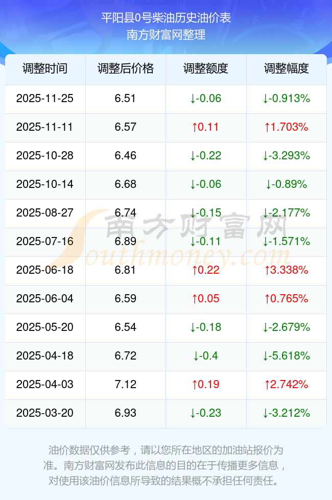 平陽(yáng)縣0號(hào)柴油歷史油價(jià)表