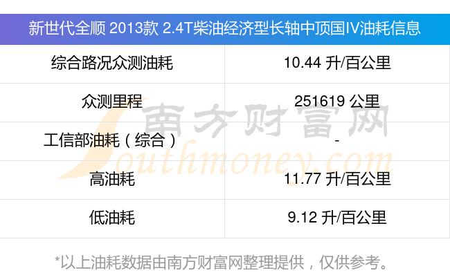 根據(jù)多位車主實(shí)測(cè)得出數(shù)據(jù),該車型低油耗為9.12L/100km,高油耗為11.77L/100km,綜合路況眾測(cè)油耗為10.44L/100km,工信部綜合油耗為-L/100km。