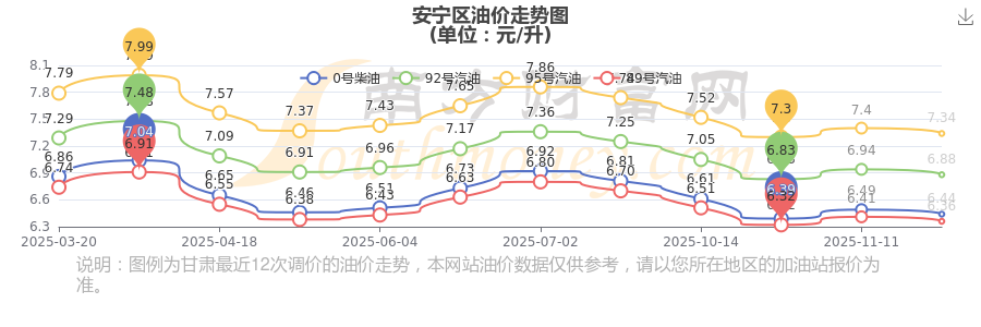 11月29日安寧區(qū)95號(hào)汽油歷史油價(jià)走勢(shì)圖