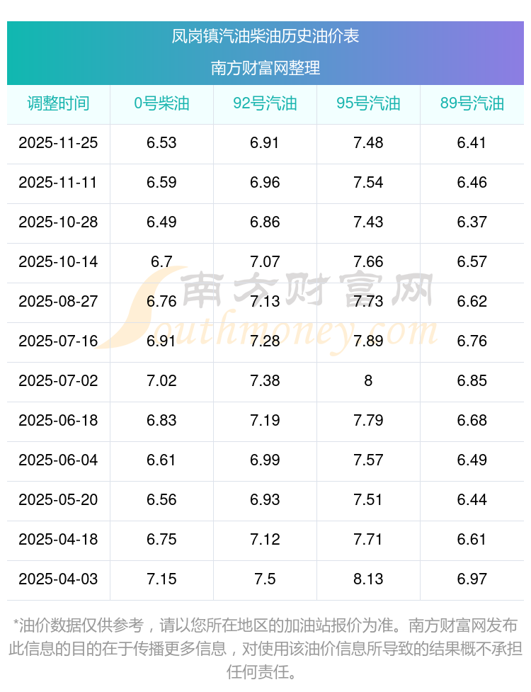 2025年鳳崗鎮(zhèn)油價調(diào)整時間表