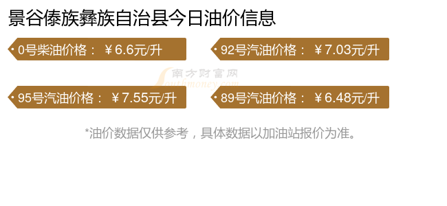 11月29日,景谷傣族彝族自治縣汽油、柴油價格多少錢一升?具體為:11月25日調(diào)整后,92號汽油為7.03元,下降了0.06元,下降幅達(dá)0.85%;95號汽油為7.55元,下降了0.06元,下降幅達(dá)0.79%;89號汽油為6.48元,下降了0.05元,下降幅達(dá)0.77%;0號柴油為6.6元,下降了0.06元,下降幅達(dá)0.9%。