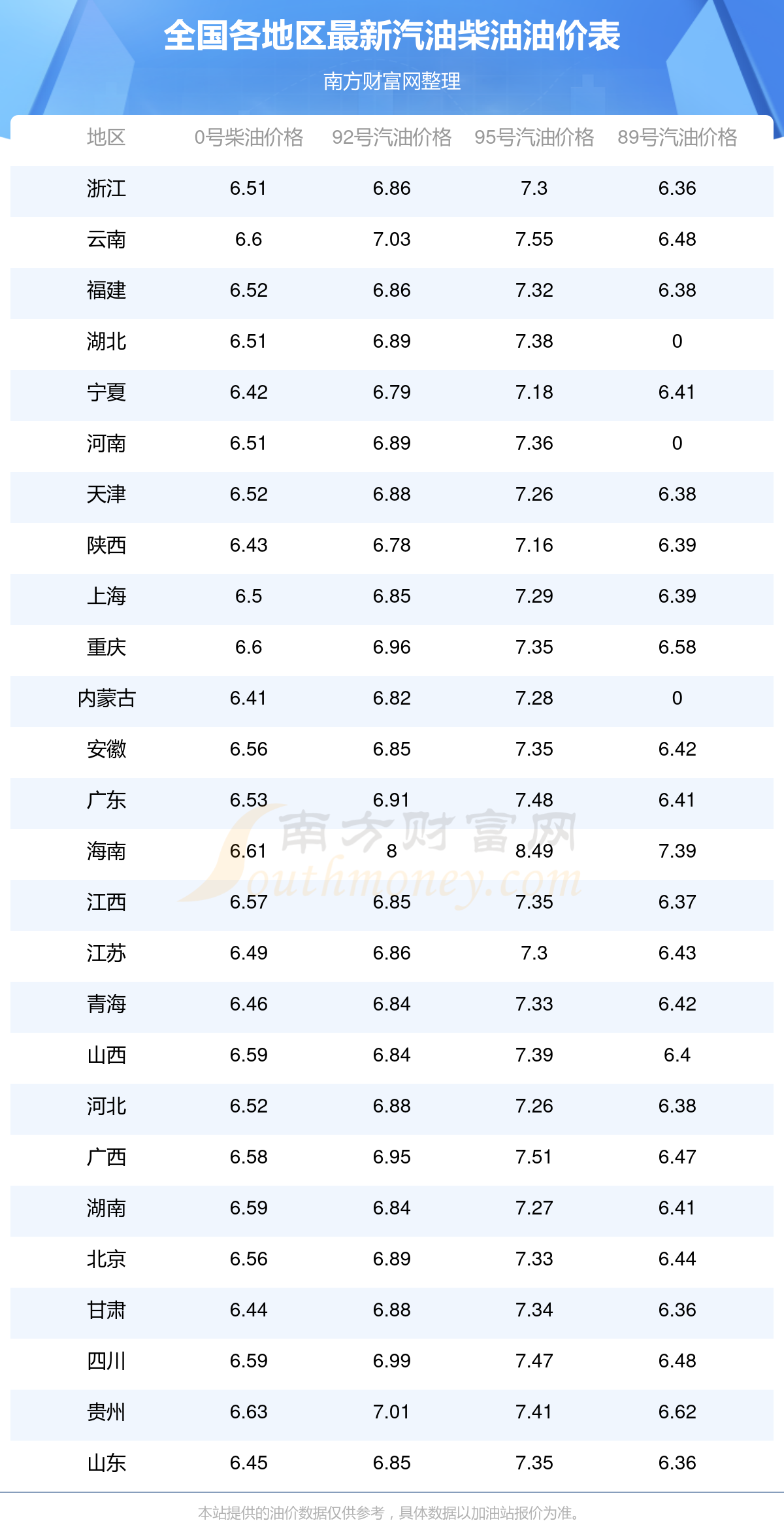 2025年11月29日全國油價(jià)調(diào)整及最新汽油價(jià)格表