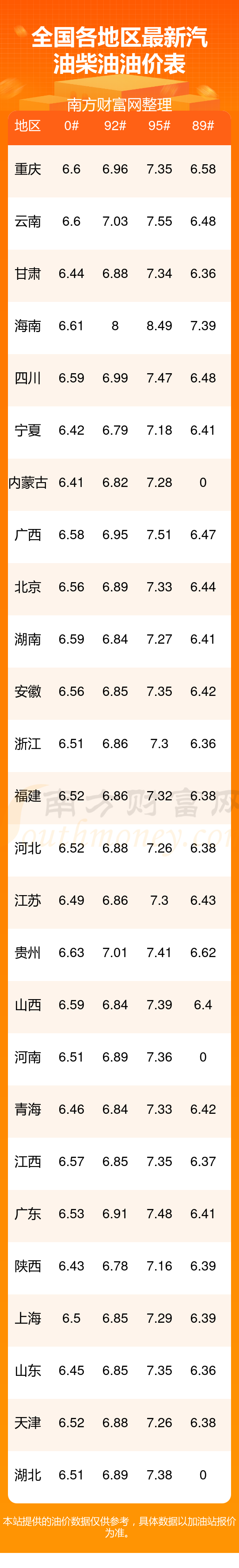 油價(jià)數(shù)據(jù)僅供參考,請(qǐng)以您所在地區(qū)的各加油站報(bào)價(jià)為準(zhǔn)。