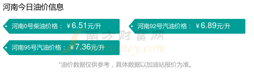 油價數(shù)據(jù)僅供參考,請以您所在地區(qū)的加油站報價為準。南方財富網(wǎng)發(fā)布此信息的目的在于傳播更多信息,對使用該油價信息所導致的結(jié)果概不承擔任何責任。