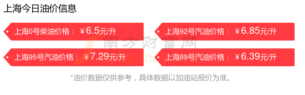 油價(jià)數(shù)據(jù)僅供參考,請(qǐng)以您所在地區(qū)的加油站報(bào)價(jià)為準(zhǔn)。南方財(cái)富網(wǎng)發(fā)布此信息的目的在于傳播更多信息,對(duì)使用該油價(jià)信息所導(dǎo)致的結(jié)果概不承擔(dān)任何責(zé)任。