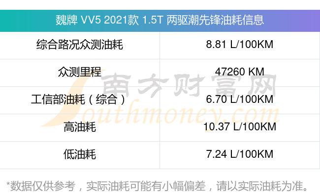 魏牌 VV5 2021款 1.5T 兩驅(qū)潮先鋒一公里耗油量多少錢(11月29日)