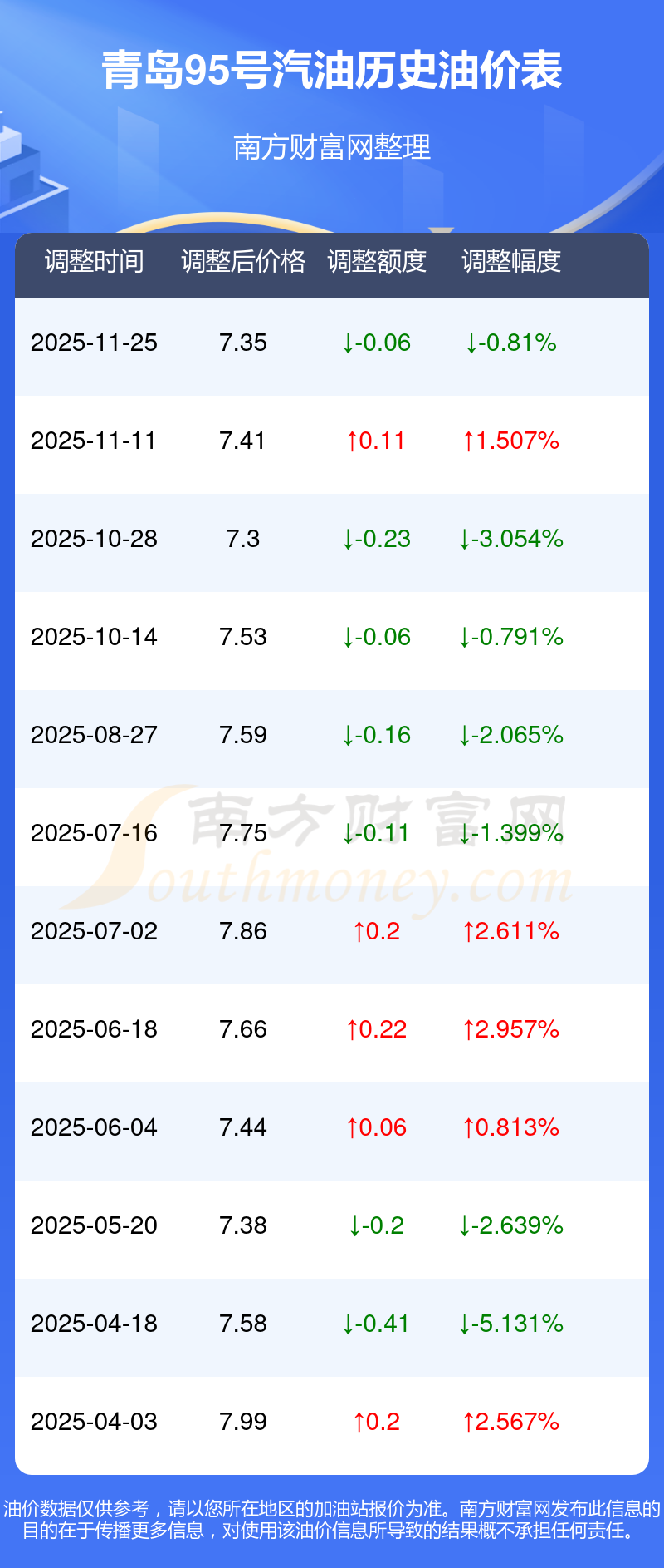 2025年95號汽油價(jià)格調(diào)整一覽表