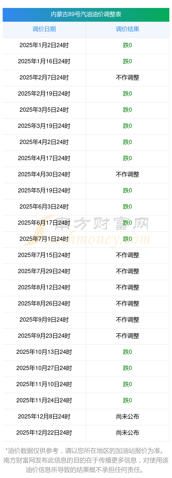 內(nèi)蒙古呼和浩特2025年油價調(diào)整時間及最新價格表