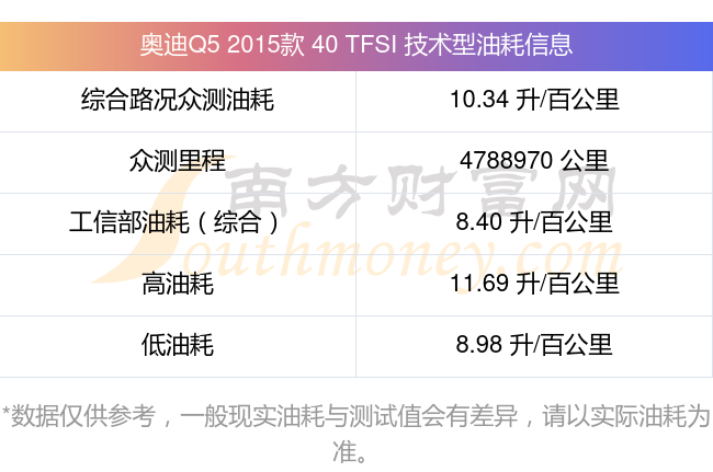根據(jù)多位車主實測得出數(shù)據(jù),該車型低油耗為8.98升每百公里,高油耗為11.69升每百公里,綜合路況眾測油耗為10.34升每百公里,工信部綜合油耗為8.40升每百公里。