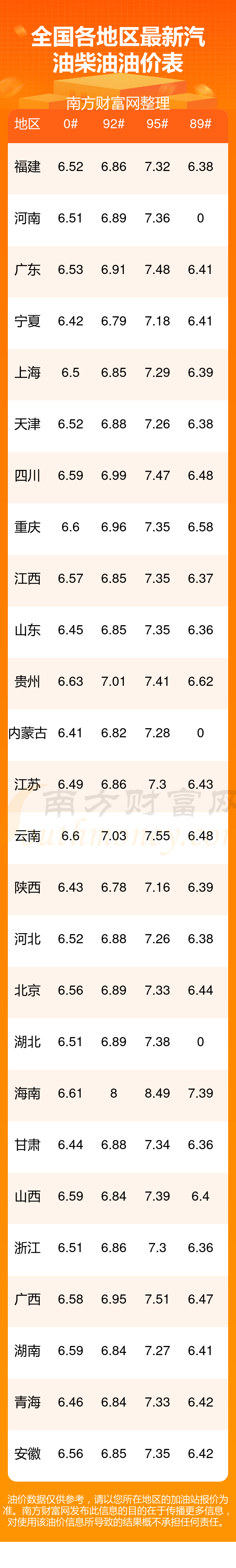 11月29日全國(guó)各地區(qū)汽油今日油價(jià)?