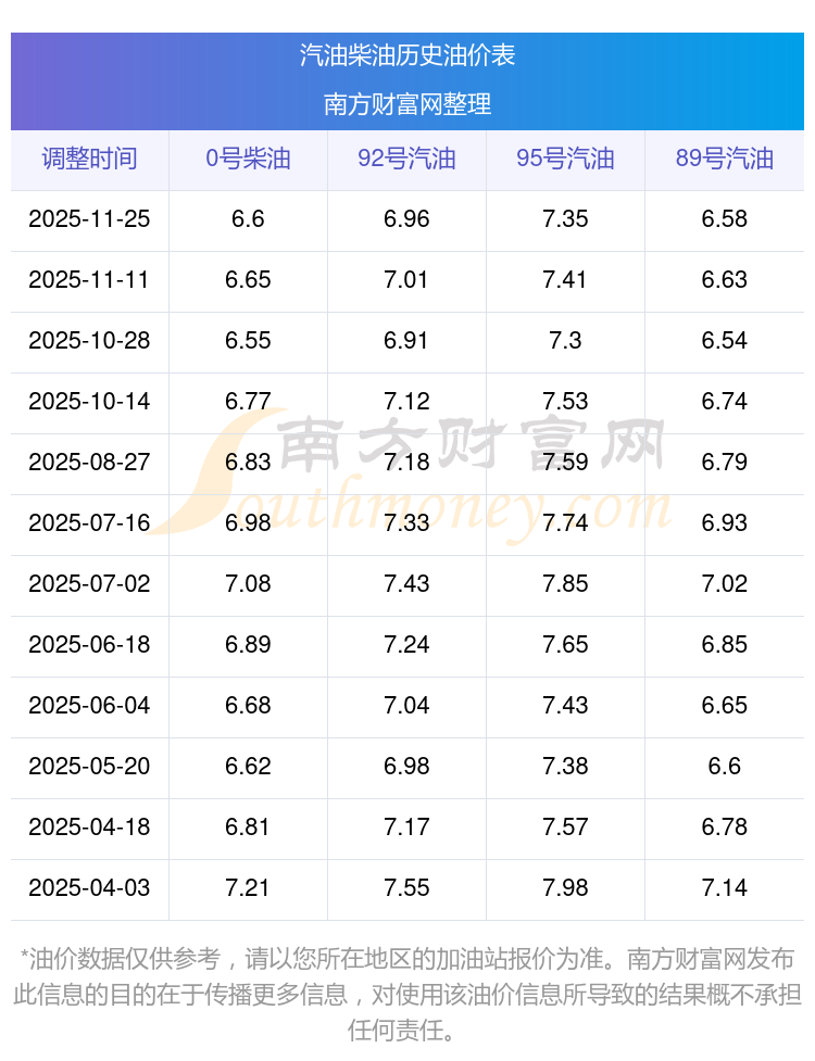 九龍坡92號汽油11月29日最新價格為11月25日油價調(diào)整后的價格,具體為6.96元/升,相對上次調(diào)整時間11月11日的油價7.01元每升,共降了0.05元,降0.713%。下一輪油價調(diào)整時間12月8日24時,距離現(xiàn)在還有9.17天。