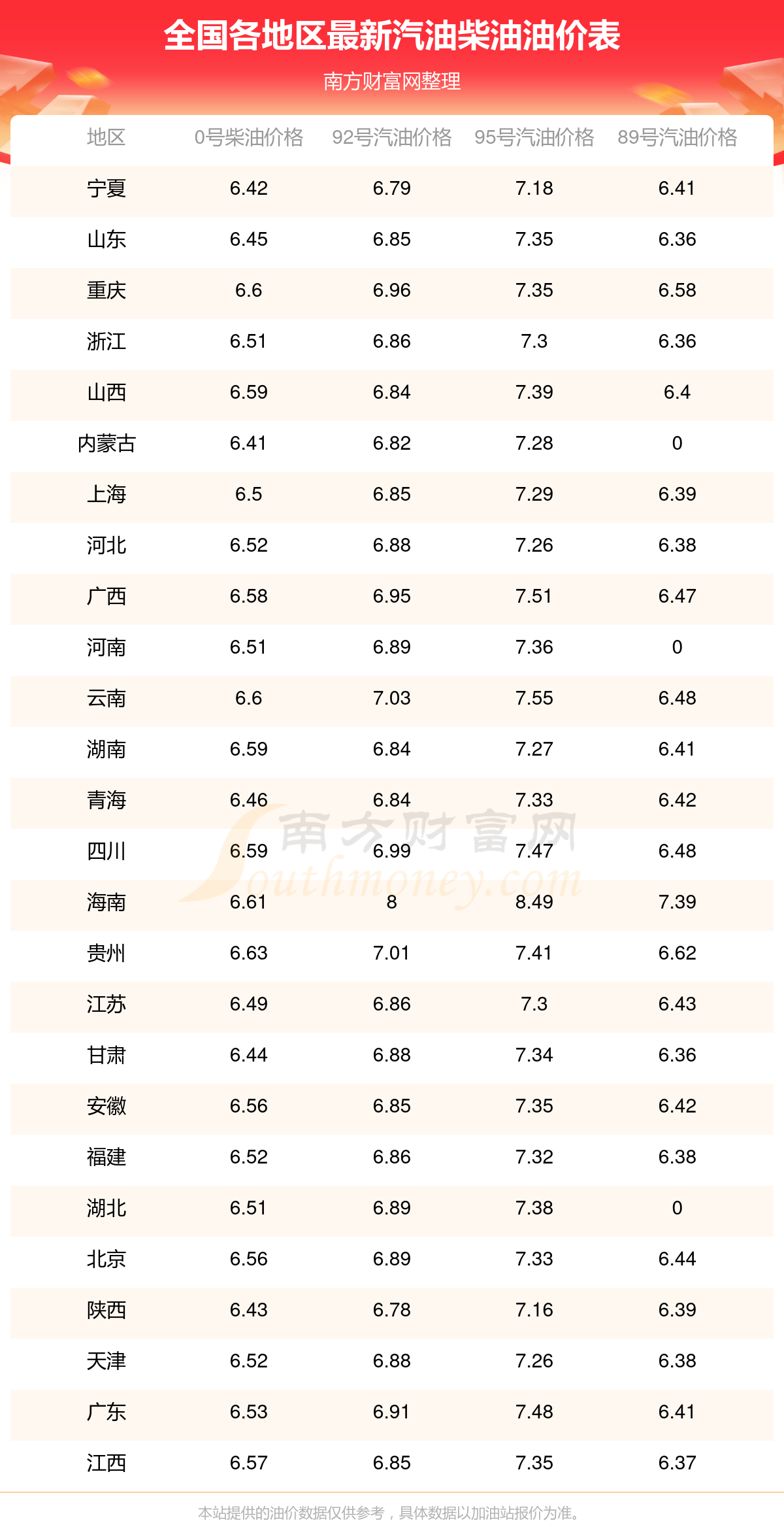 2025年11月29日全國油價(jià)調(diào)整及最新汽油價(jià)格表