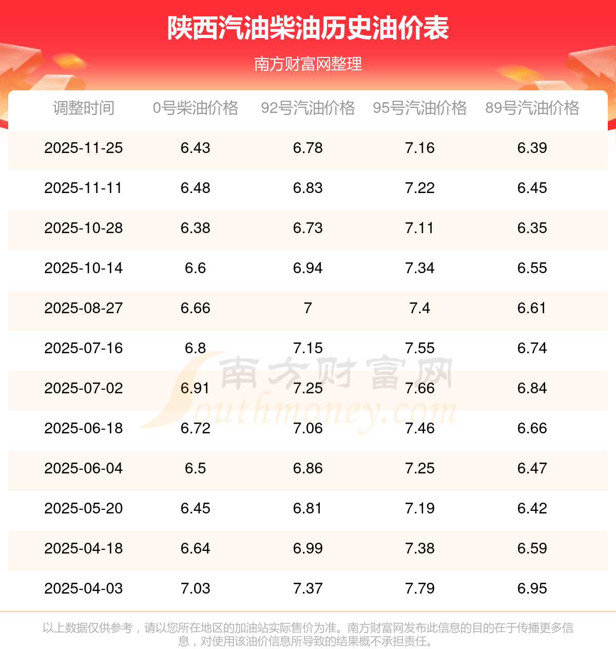 11月29日陜西油價今日價格_陜西油價92、95號汽油價格查詢