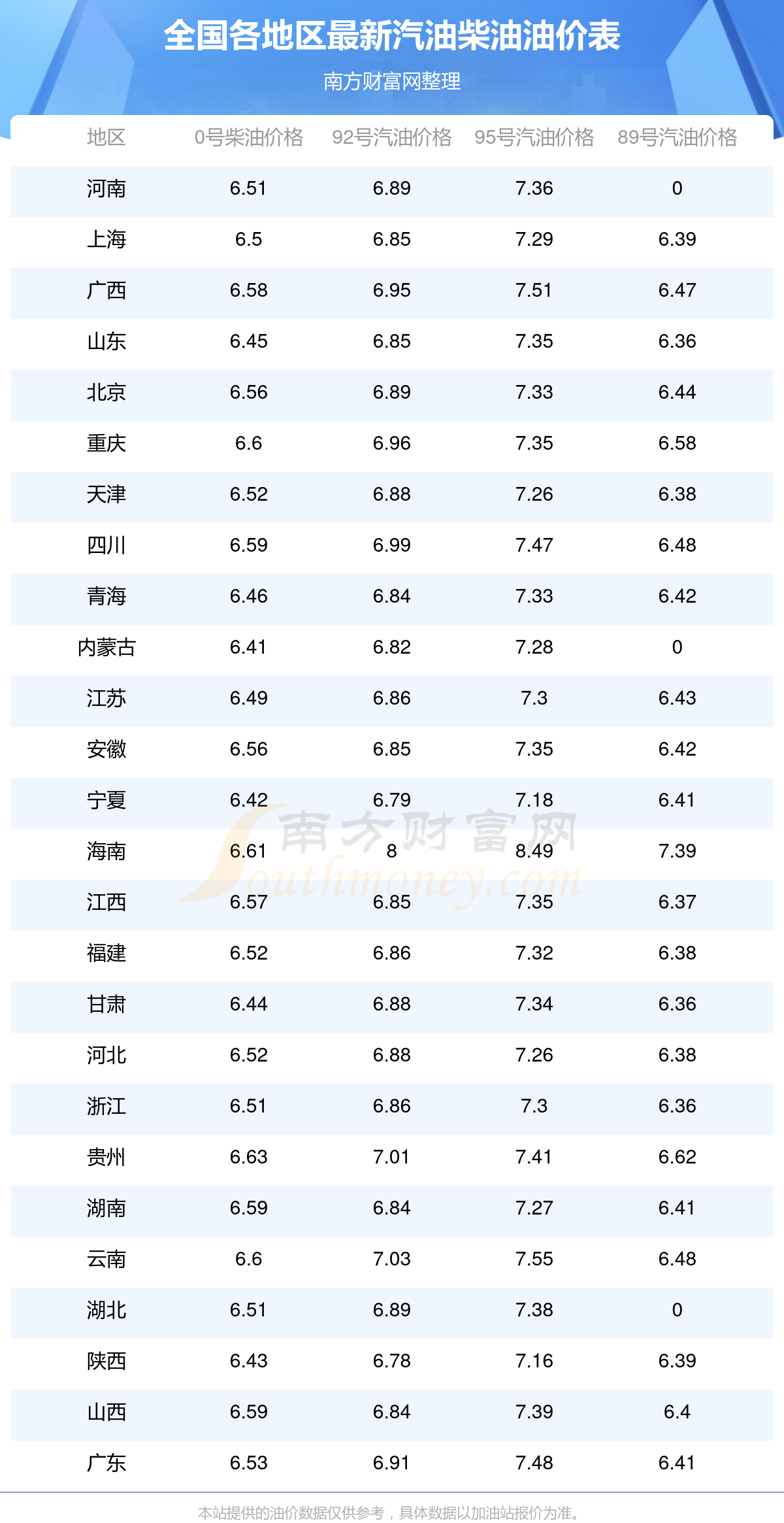 油價調(diào)整最新消息:油價最新調(diào)整時間為11月25日 ,全國92號汽油最新平均價格為:7元每升,其中,最高為海南,價格為8.00元/升,最低為陜西,價格為6.78元/升。全國95號汽油最新平均價格為:7元每升,其中,最高為海南,價格為8.49元/升,最低為陜西,價格為7.16元/升。全國0號柴油最新平均價格為:7元每升,其中,最高為貴州,價格為6.63元/升,最低為內(nèi)蒙古,價格為6.41元/升。全國89號汽油最新平均價格為:6元每升,其中,最高為海南,價格為7.39元/升,最低為浙江,價格為6.36元/升。下一輪汽油價格調(diào)整時間12月8日24時,距離現(xiàn)在還有9.14天。